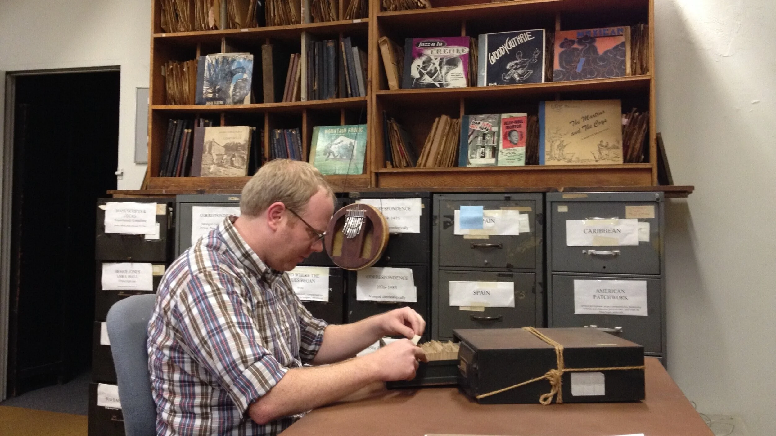Conducting research at the Association for Culture Equity (Alan Lomax Archive). Photo by Don Fleming